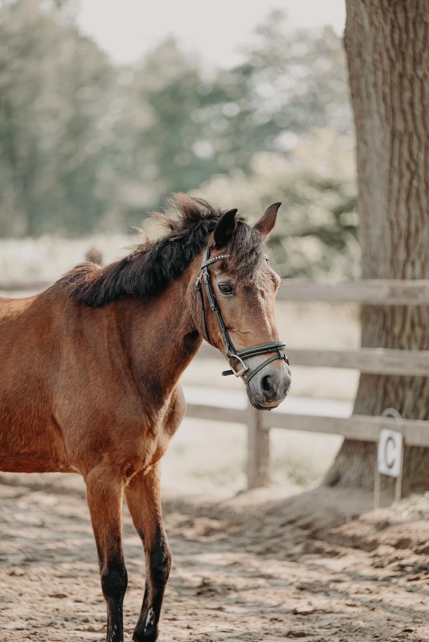Deze bijzondere pony veroverde onze harten totaal onverwacht. Zij stond eenzaam bij een boer en hunkerde naar een plaatsje tussen onze paarden. Ze geeft vertrouwen aan de ruiter door haar brede bouw en nuchtere omgang,